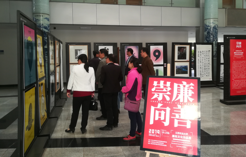 本次作品展以“崇廉向善”为主题,展品分为书法、绘画、摄影、海报等四类,共展出近年来从校园廉政文化作品征集活动中遴选的优秀作品35件,均为学校师生员工原创。作品以书言志、以画喻廉、以图倡廉,弘扬正气、鞭挞腐败,展示了全校广大师生员工崇尚廉洁的精神风貌和思想追求。