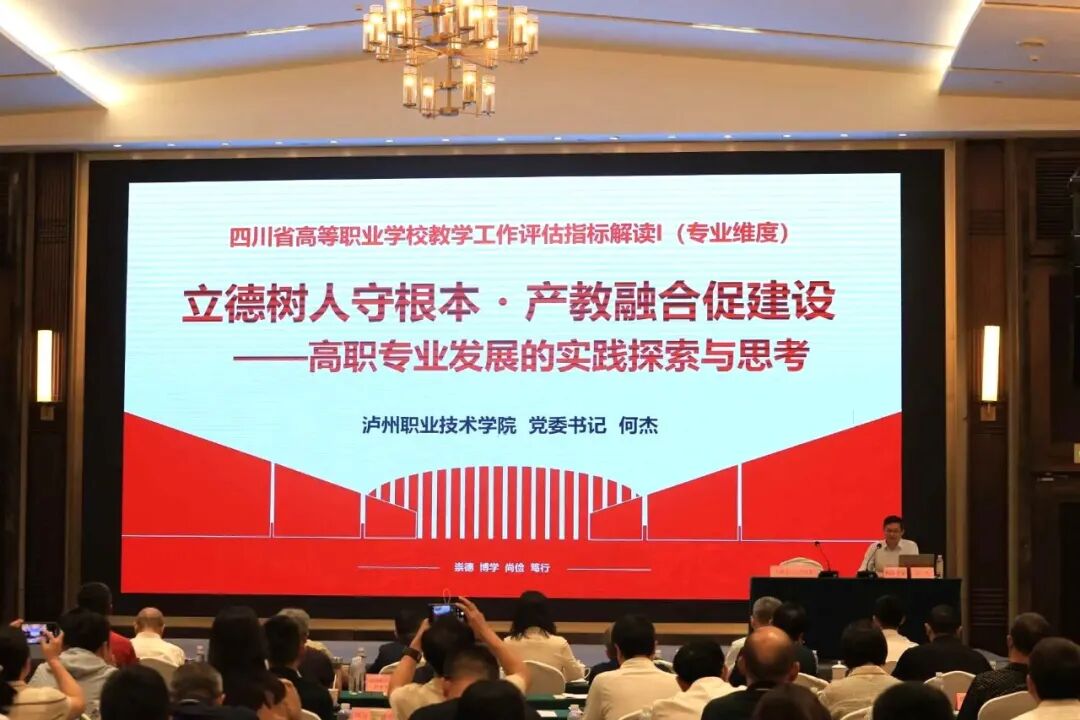 我校党委书记何杰作了题为《四川省高等职业学校教学工作评估指标解读(专业维度)——立德树人守根本・产教融合促建设》的专题报告。他结合方案起草背景,深入阐释了如何答好“专业建设科学规划、专业对接产业、专业育人为本、促进就业创业”四大命题。