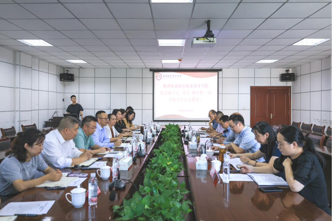 10月10日,眉山职业技术学院党委副书记、校长刘兴勇一行来校,就我校“双高计划”建设情况开展调研交流。学校党委副书记、院长谢鸿全出席调研交流会,会议由党委常委、副院长鲍学东主持。
