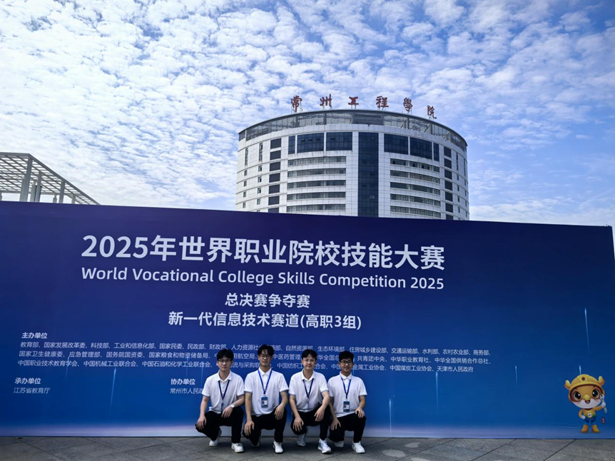 9月8日至12日,2025年世界职业院校技能大赛总决赛争夺赛 “新一代信息技术赛道(高职组)” 在江苏常州举行。我校人工智能与大数据学院学生李言、邱韵伦、边锦吉、刘宗鑫,在指导教师陈玲、夏汛带领下,与全国28个省(区、市)及7个国家的251支队伍、1000余名选手竞技,最终斩获我校本届赛事首枚金奖,实现学校在该赛事金奖荣誉的历史性突破。