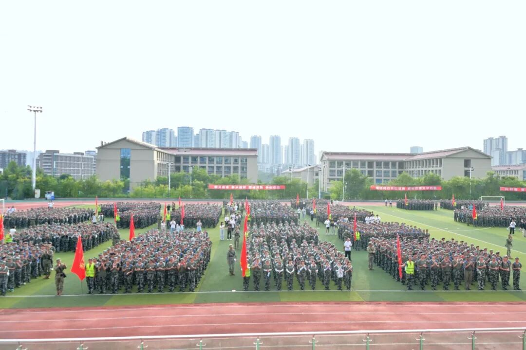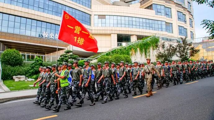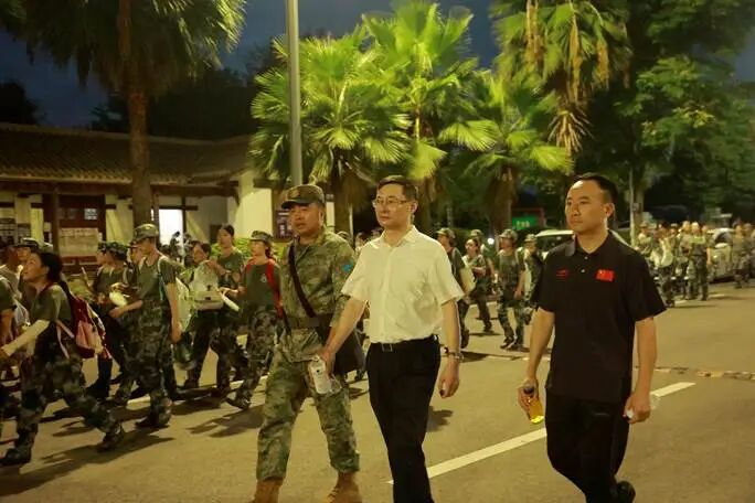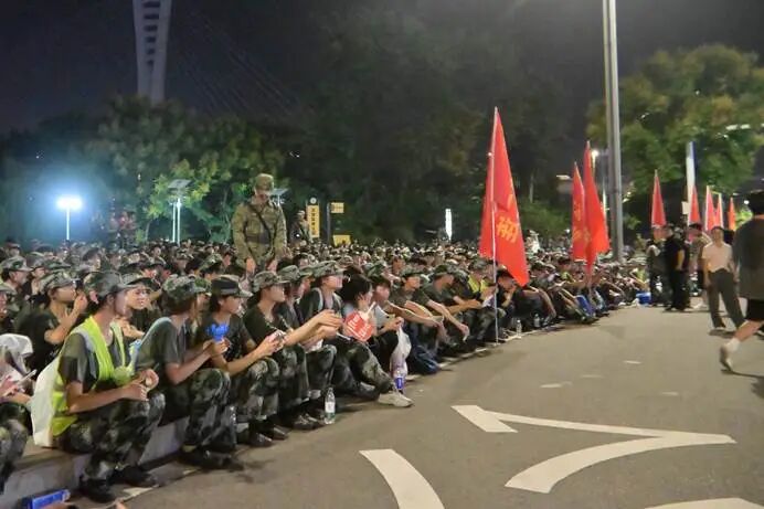 当晚18时整,参训新生们在教官和辅导员的带领下,于东华校区足球场准时集结。党委书记何杰铿锵有力地宣布:“出发”!队伍如一条威武的迷彩长龙,迎着晚风,昂首阔步走出校门,开始了这场意志与体力的考验。