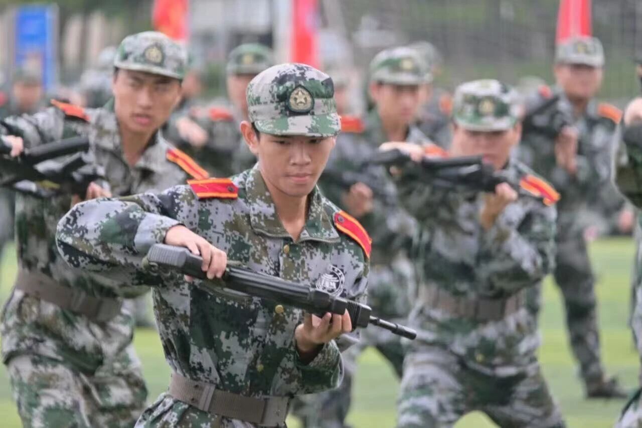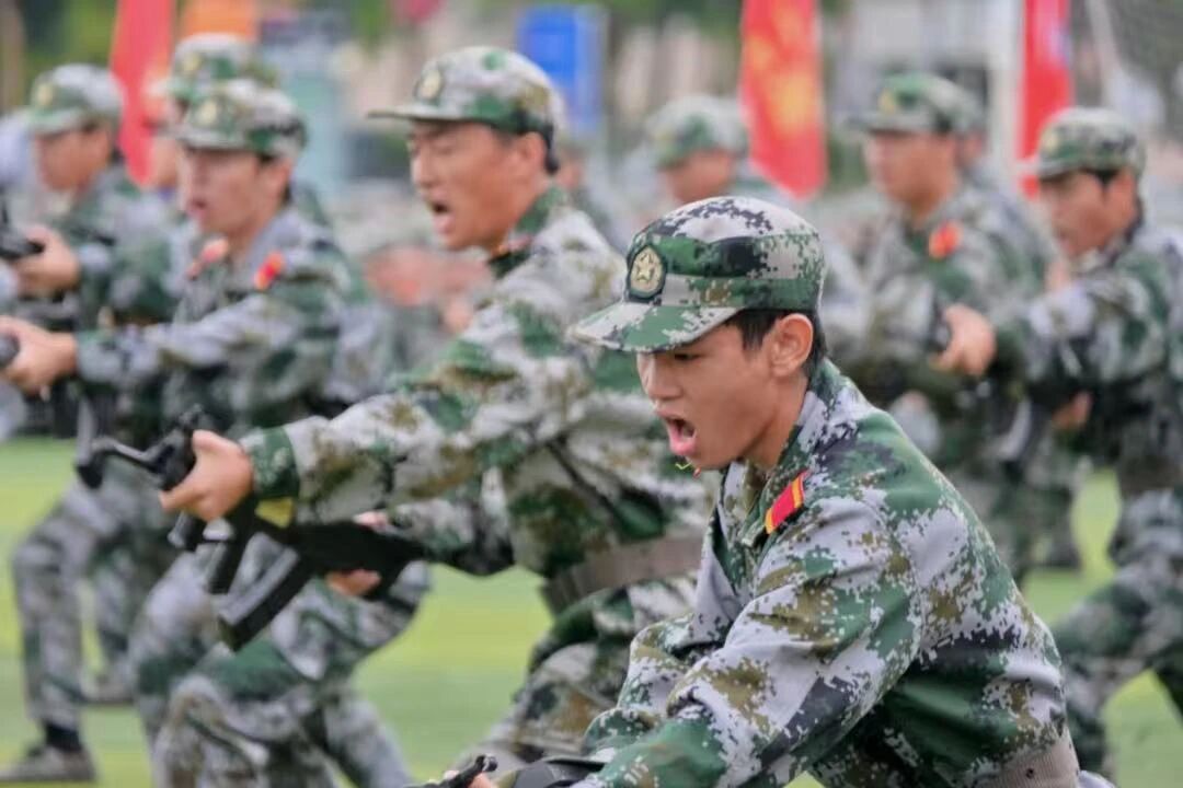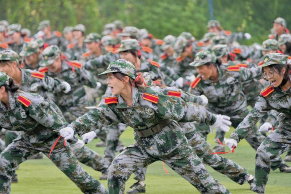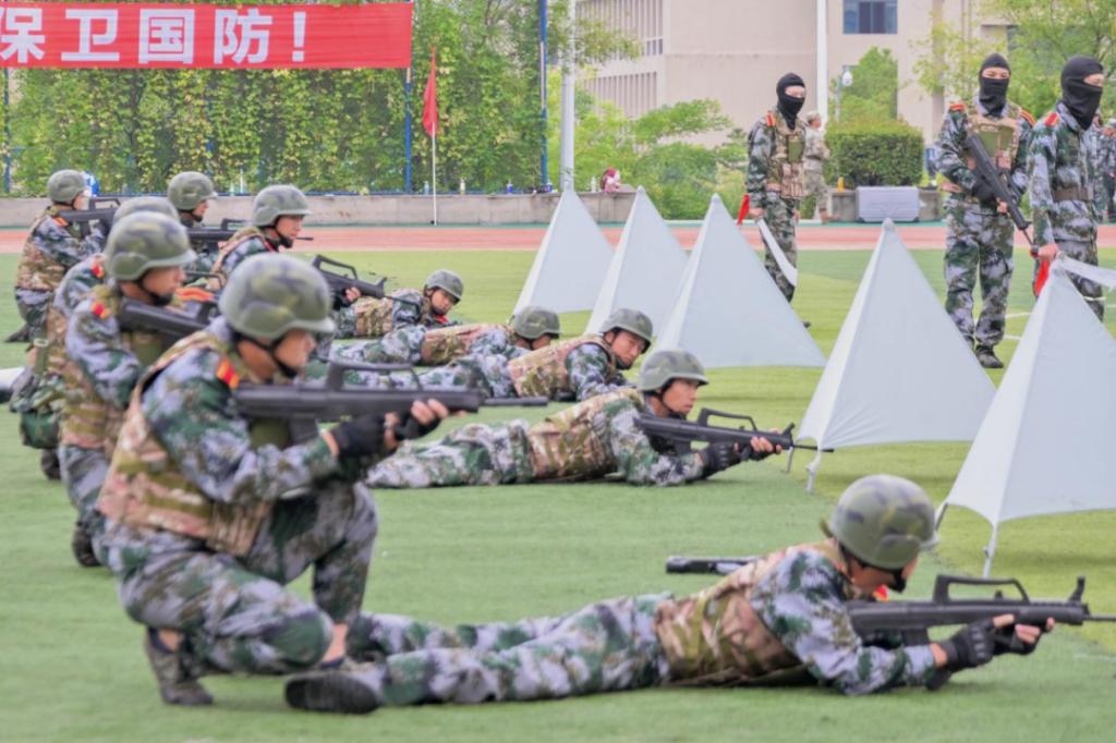 停止间队列动作展示,大家反应迅速、整齐划一,充分展现着训练成果。刺杀操阳刚威武,擒敌拳气势雄浑,匕首操凌厉飒爽,呐喊与掌声共鸣,迸发出青春活力。