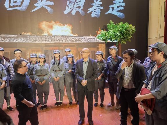 近日,学校党委副书记、院长谢鸿全,党委副书记熊剑,党委常委、副院长鲍学东到思政红色文化实践课现场,围绕情景剧主题立意、剧本创作、表演形式等关键环节指导把关,推动学校红色文化育人工作走深走实。作为学校“大思政课”建设的核心载体,该实践课自本学期启动以来,始终得到学院领导的高度重视与全方位赋能。