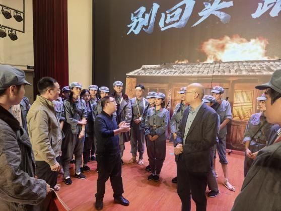 各位领导的精准指导为实践课开展锚定清晰方向。在为期一个月的实践进程中,同学们在教师团队带领下,利用课余时间深耕剧本细节、亲手制作场景道具、系统查阅党史文献,以严谨态度还原历史场景、诠释革命精神。参与表演的大一学生坦言:“领导们的细致点拨让我们对红色文化的时代价值理解更深刻,思政实践课不仅是表演技能的提升,更是一次沉浸式的精神洗礼,让我们真切体会到革命先辈的理想信念与奋斗担当。”