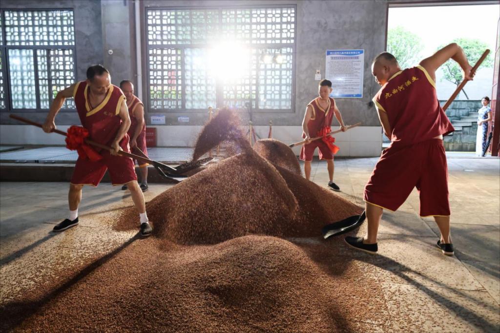 “端午制曲,重阳下沙”,这句流传千年的酿酒古训,在此次封坛典礼中得以完整复刻。师生们亲身参与上粮、请水、润粮等传统工序,每一铲精准翻拌,每一次细致铺沙,皆是对“顺天时、应地利、敬自然”传统酿造智慧的躬身践行。走进酱香型白酒酿造车间,学生们近距离观察高粱在不同阶段的状态变化,亲手掌握“回马上沙”这一核心技法,将课本上的理论知识转化为可触可感的实践经验,也在一招一式间,深刻领悟到工匠精神中“精益求精、久久为功”的内涵。