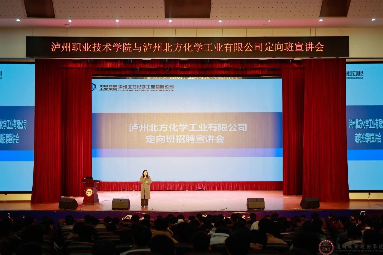 2月25日,泸州北方化学工业有限公司在泸州职业技术学院玉阶素质教育中心举行定向班组班宣讲会,2024级工业机器人技术、机电一体化技术、机械制造及自动化和电力系统自动化技术专业350名学生参加宣讲会。