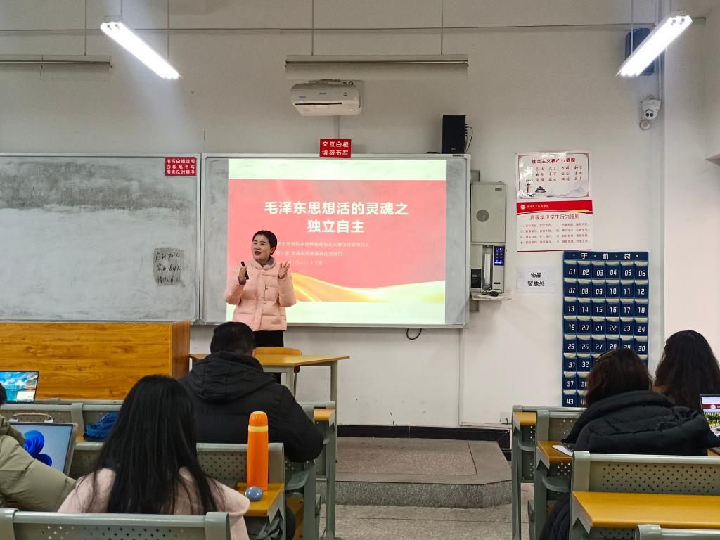 开学第二周,黄晓如老师《形势与政策》课的精彩讲授拉开了本学期“精彩一课”教学展示活动的序幕。本周进行教学展示的是思想道德与法治教研室的黄小莉老师和概论教研室的周珺老师,两位老师的精彩授课展现了扎实的教学功底与独特的教学风采。在《思想道德与法治》课上,黄小莉老师紧密联系当下社会热点,激发学生的思考与讨论,让思政教育真正走进学生内心。在《毛泽东思想和中国特色社会主义理论体系概论》课上,周珺老师巧妙结合历史脉络与时代发展,将抽象理论具象化,引导学生深入理解毛泽东思想活的灵魂——独立自主。