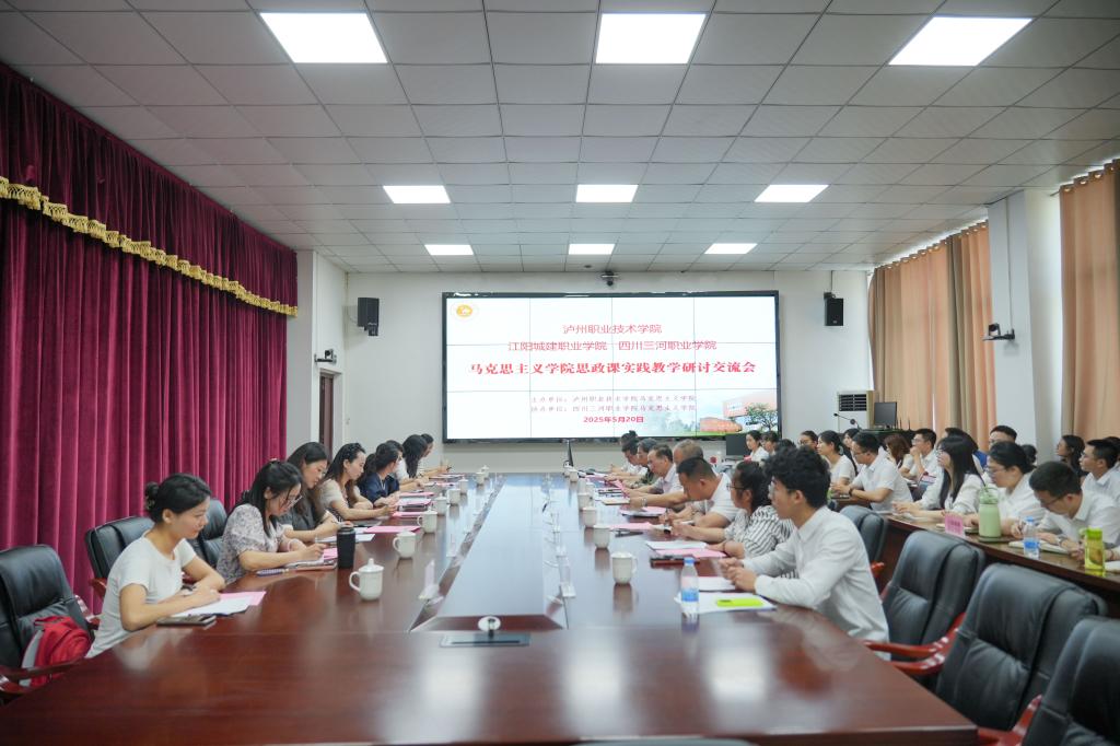为深入学习贯彻习近平总书记对学校思政课建设作出的重要指示精神,认真落实省委教育工委、教育厅关于开展四川省高校万象城平台结对共建的工作部署,5月20日,泸州职业技术学院、江阳城建职业学院、四川三河职业学院联合举办思政课实践教学研讨交流会,围绕思政课实践教学内容、路径、方法等开展集体备课,共同推动马院建设结对共建走深走实。江阳城建职业学院党委书记蒋和平、四川三河职业学院党委书记叶昌伦、泸州职业技术学院万象城平台院长汪华莉以及三所高校万象城平台教师代表、学生代表参加了集体备课。
